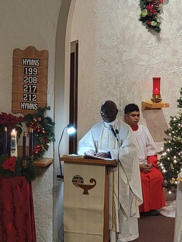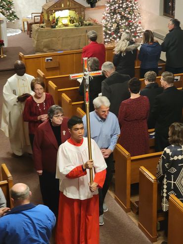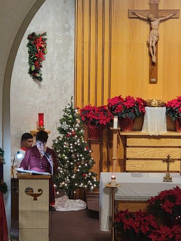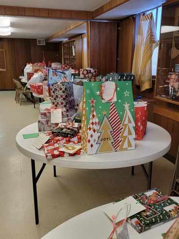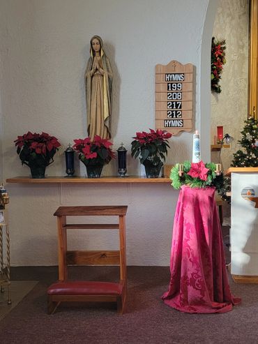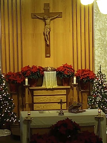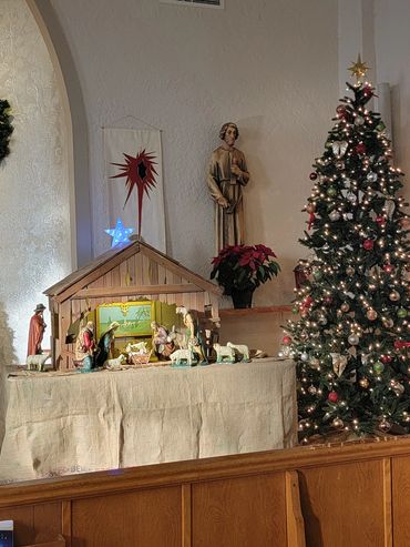 We began the Christmas season with the Giving Tree. Parishioners picked tags from the Giving Tree in the church and then filled the wishes on the tags. Gifts were returned and distributed to the various agencies to give to the needy. Our church provided 87 gifts. St. Joseph's Church was decorated with trees, red Poinsettias, and the traditional nativity stable that has been used for over 50 years.